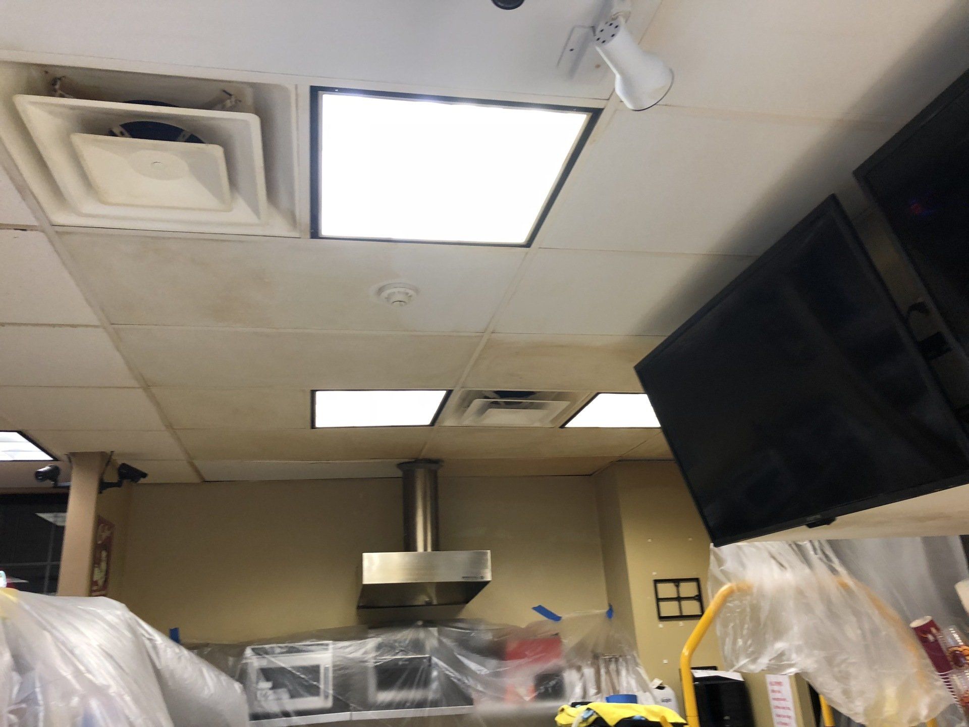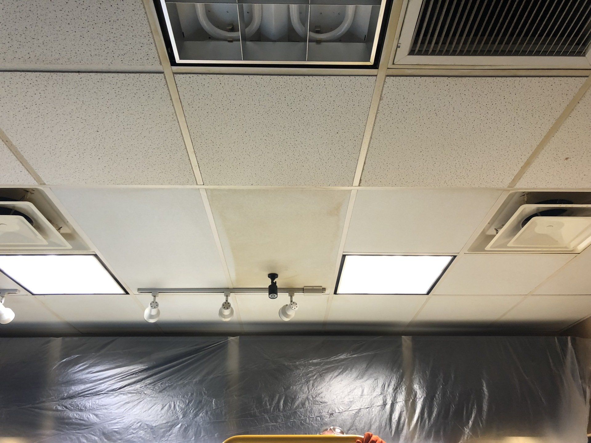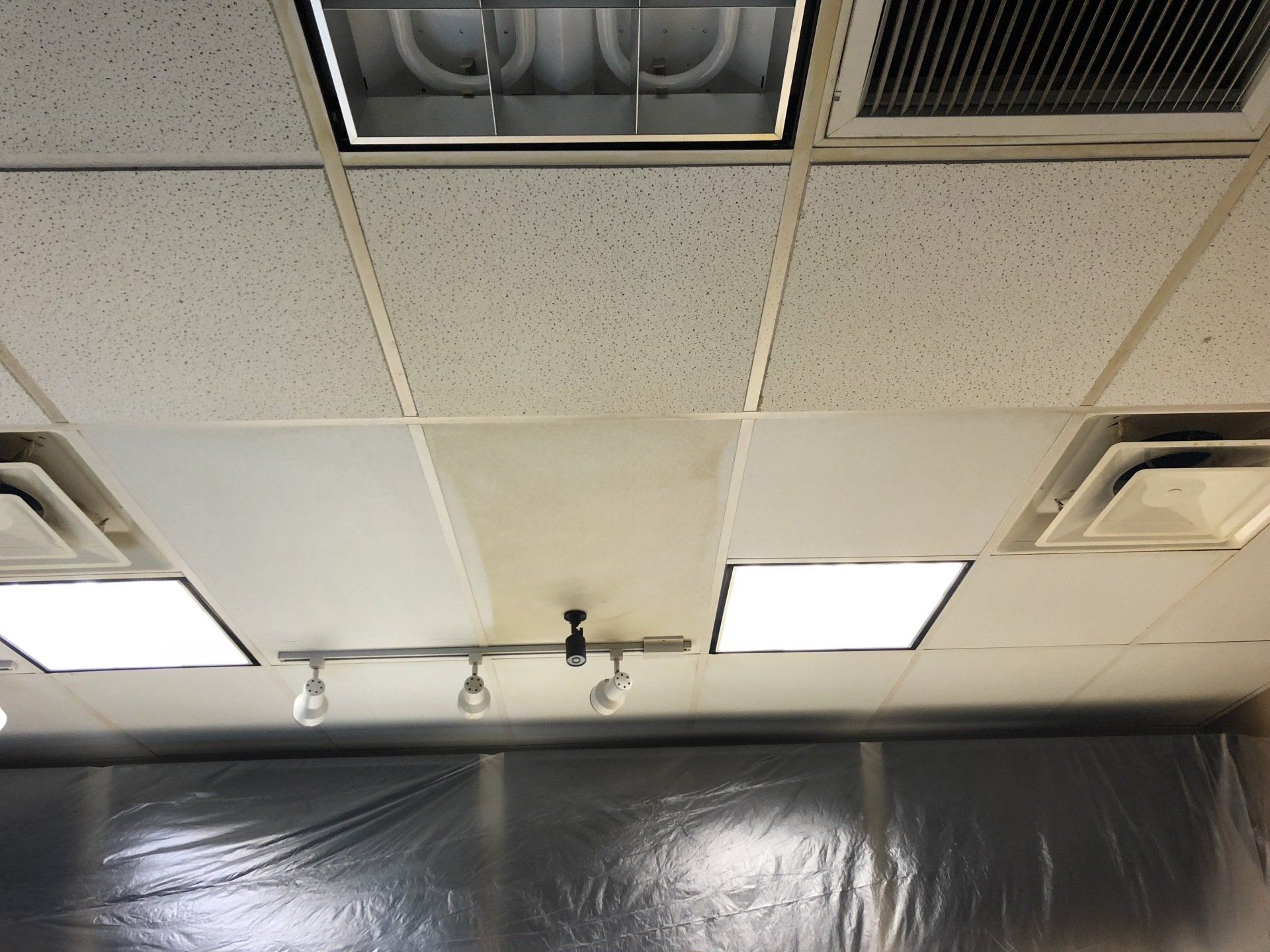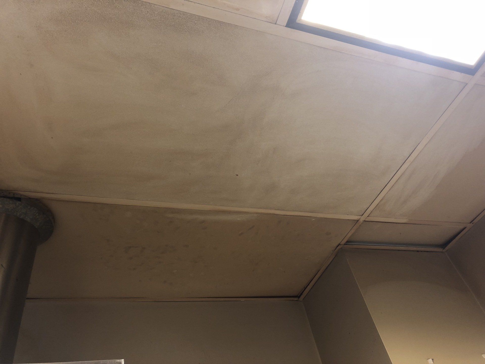 This job was finished in one night. The owner never had to close the shop to customers outside of their normal business hours. Ceiling tiles stayed in place while they were cleaned!