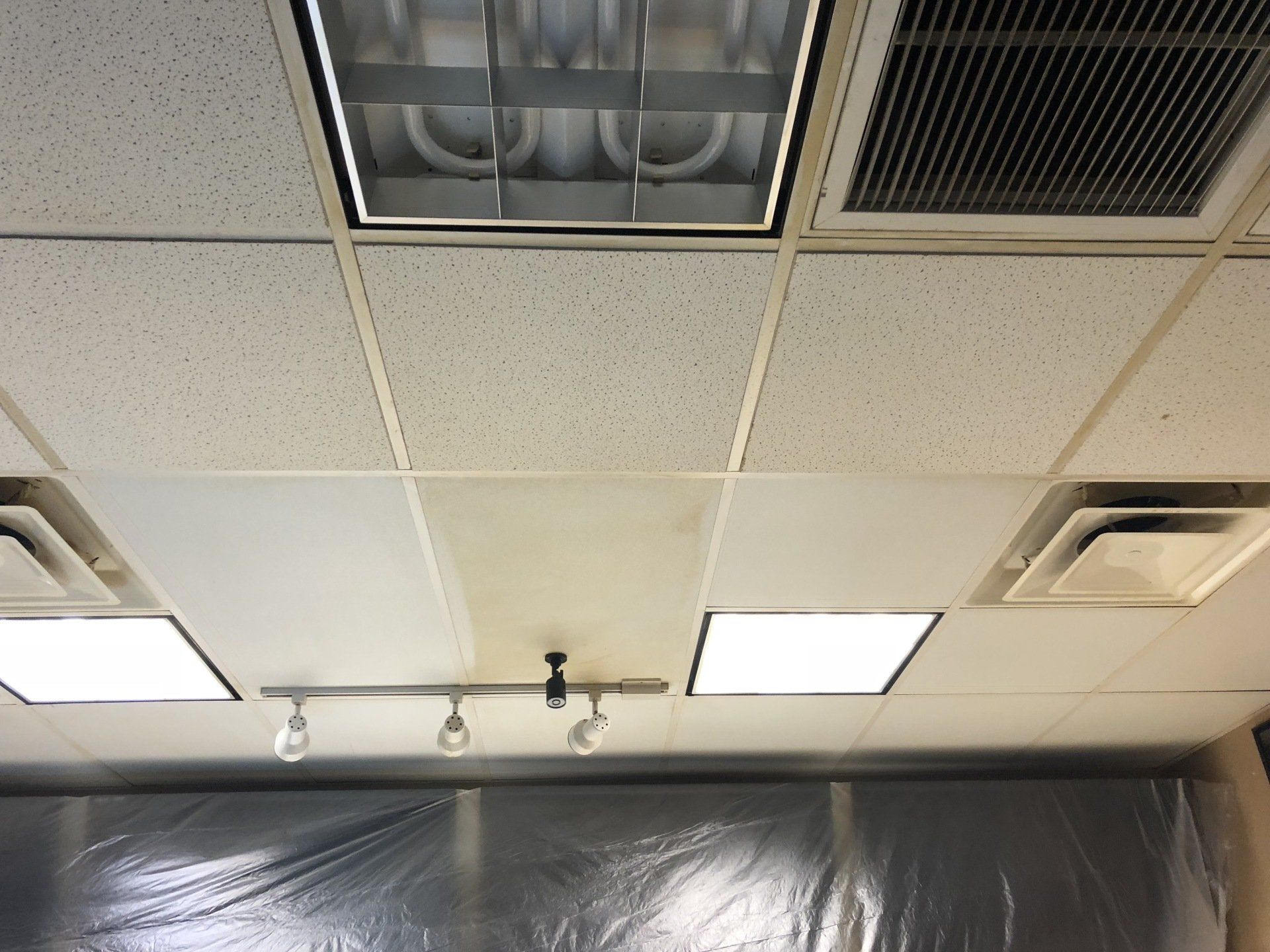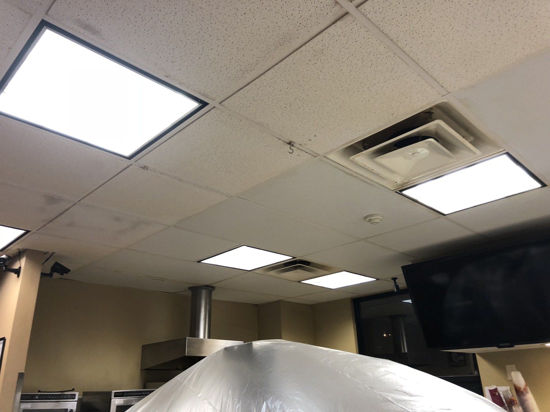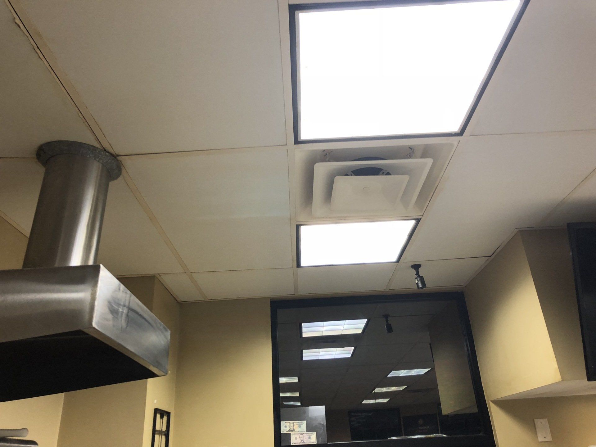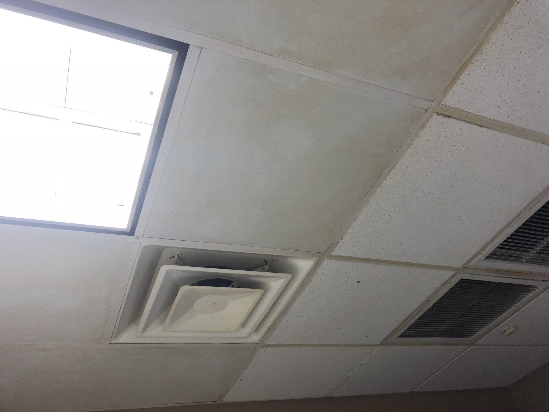 This job was finished in one night. The owner never had to close the shop to customers outside of their normal business hours. Ceiling tiles stayed in place while they were cleaned!