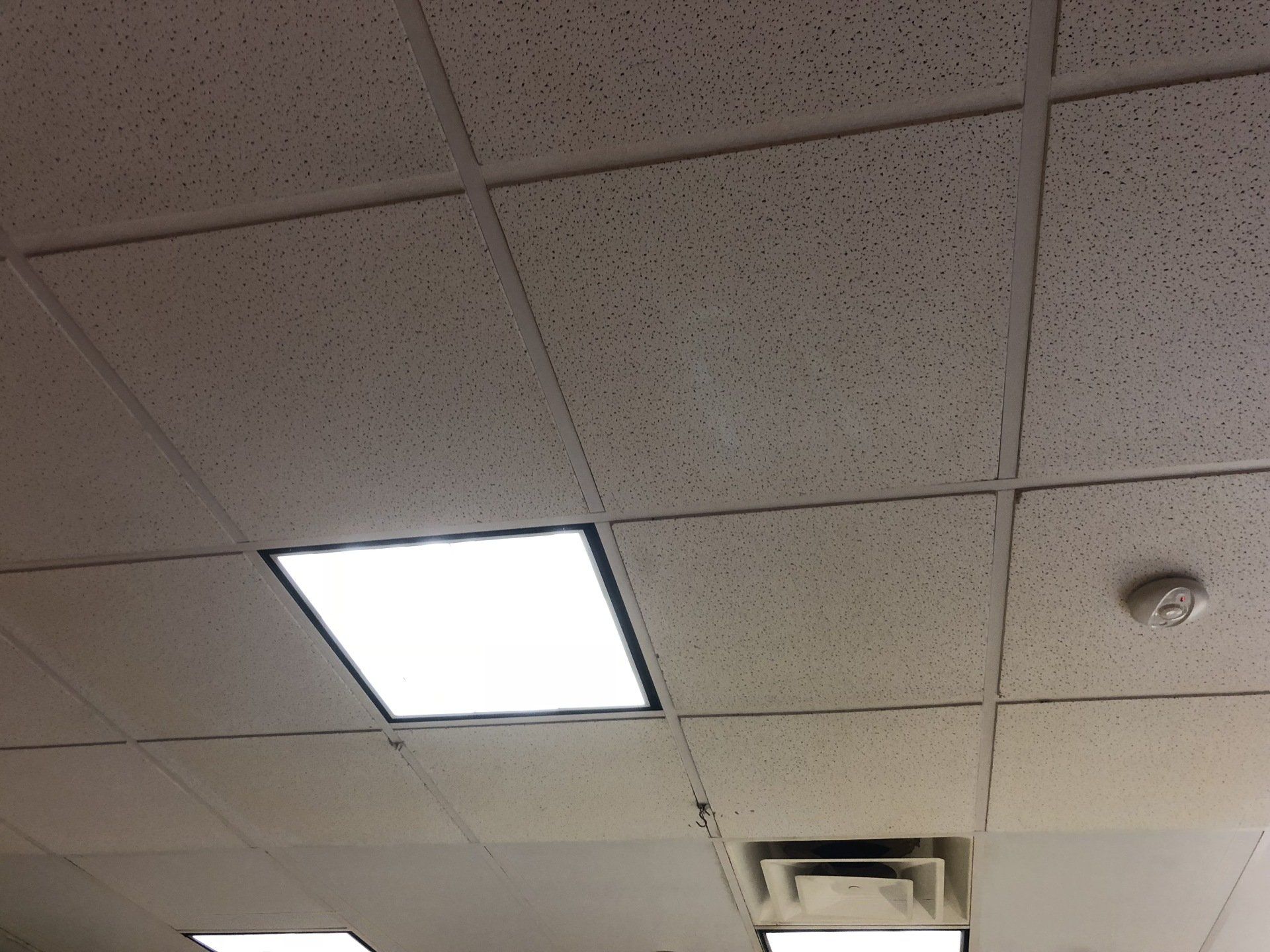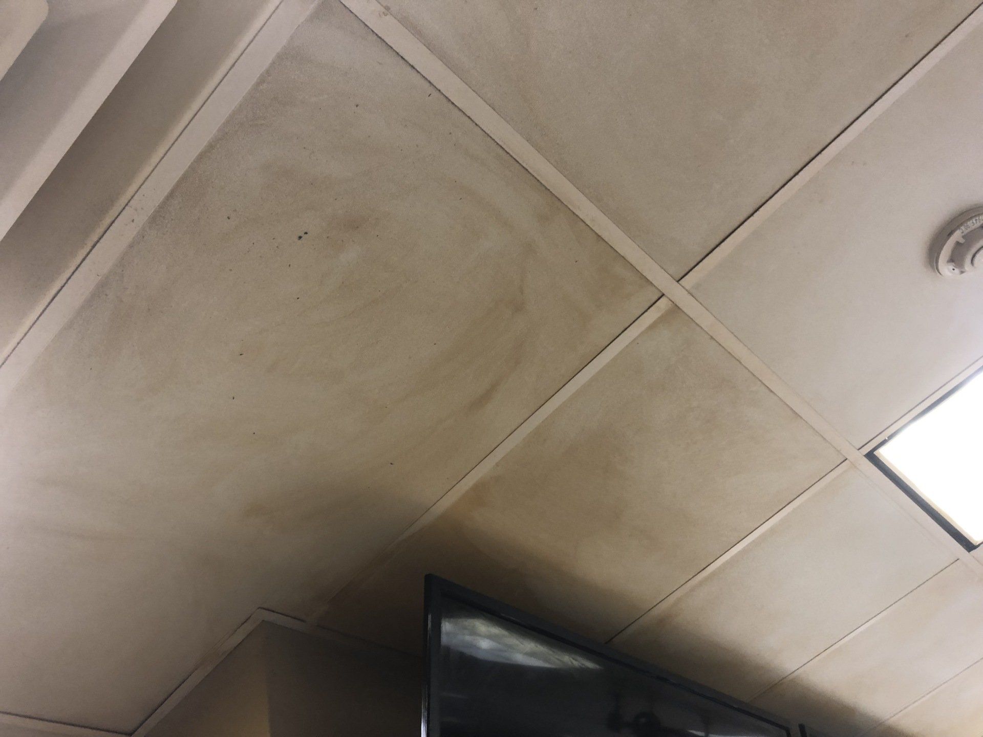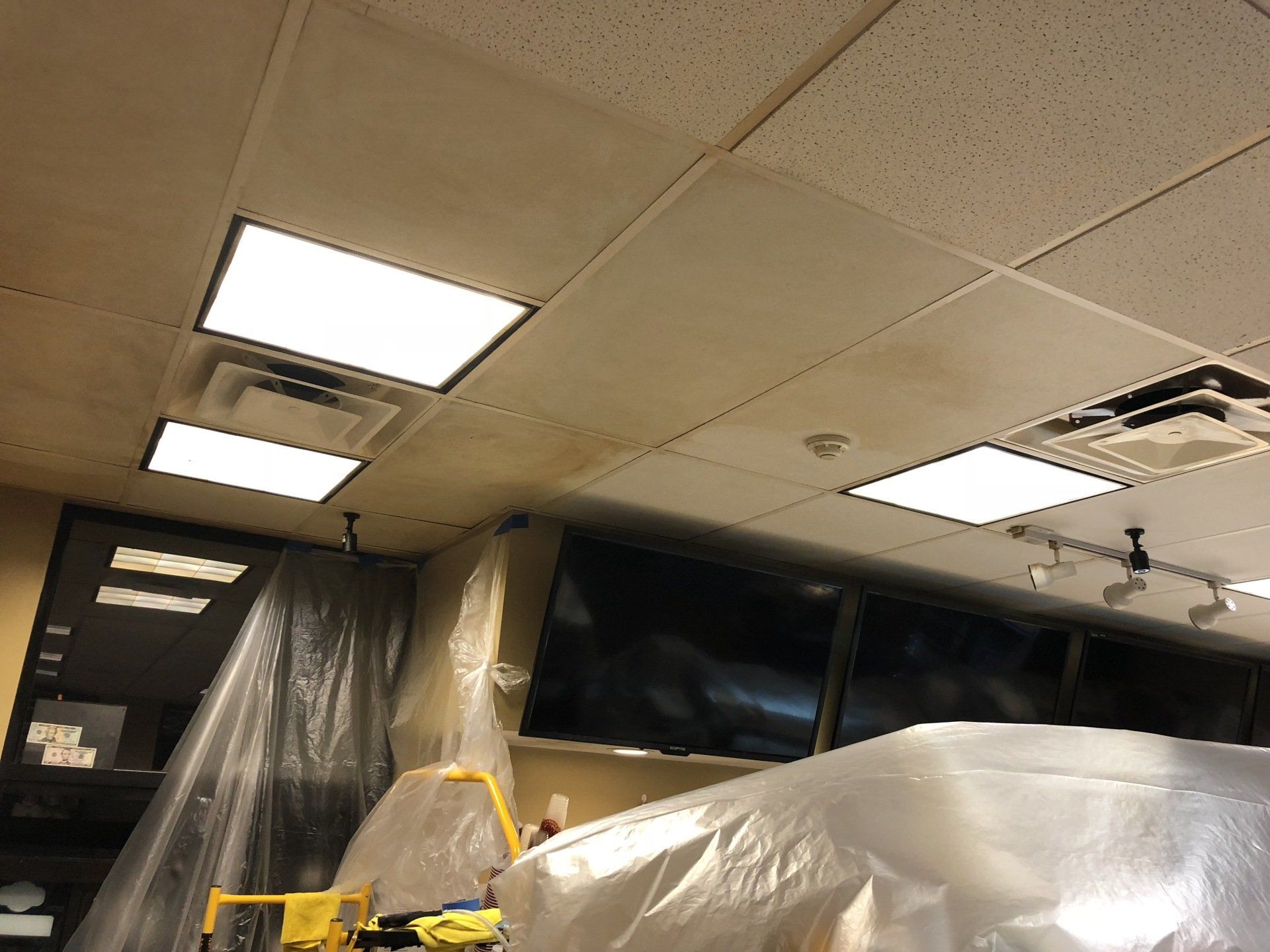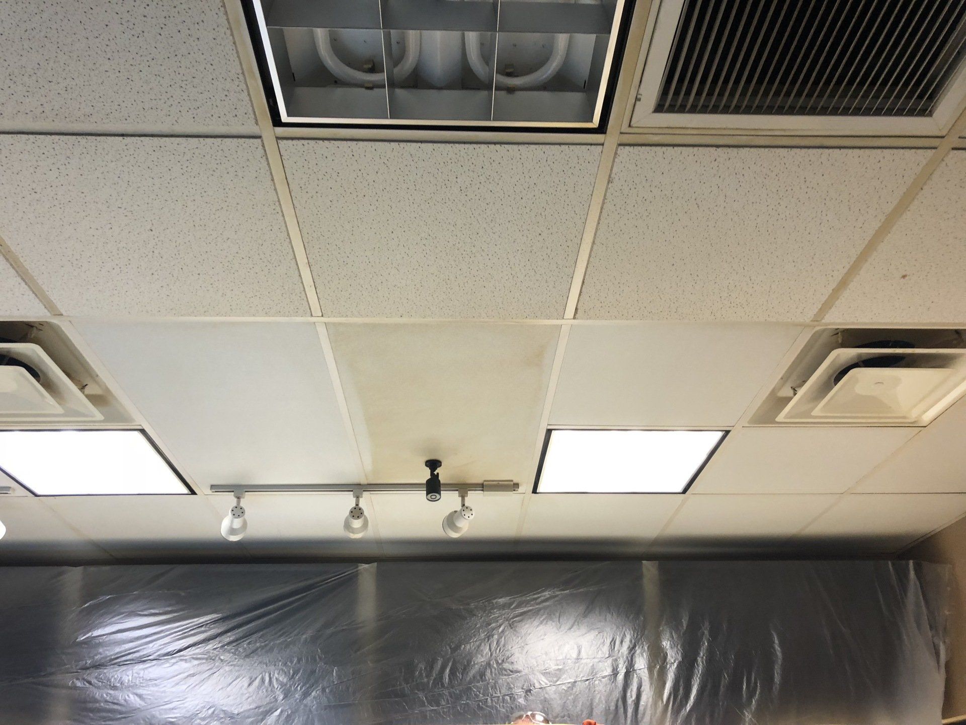 This job was finished in one night. The owner never had to close the shop to customers outside of their normal business hours. Ceiling tiles stayed in place while they were cleaned!